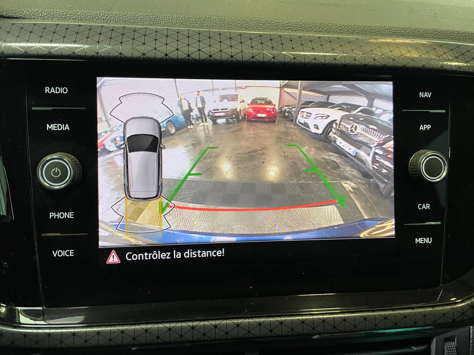 Aide au stationnement AV/AR avec signaux sonores et visualisation de la distance des obstacles sur l'écran