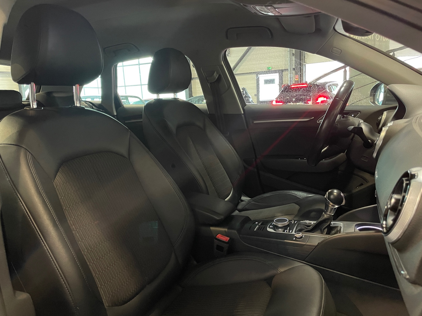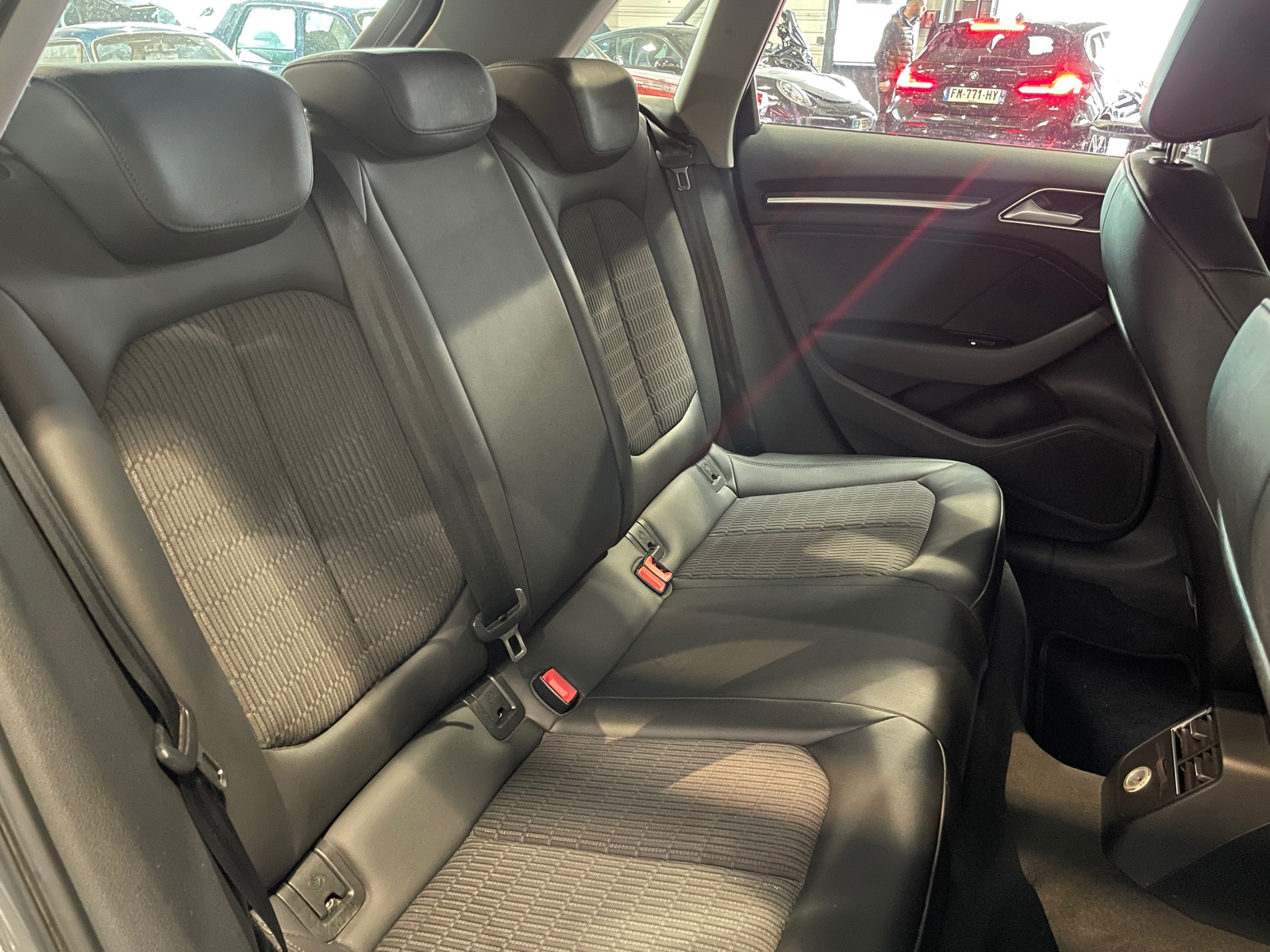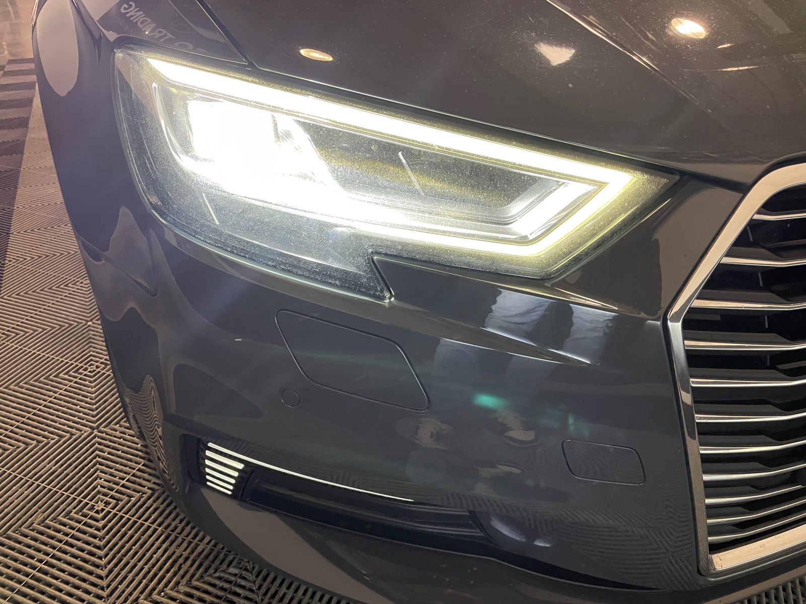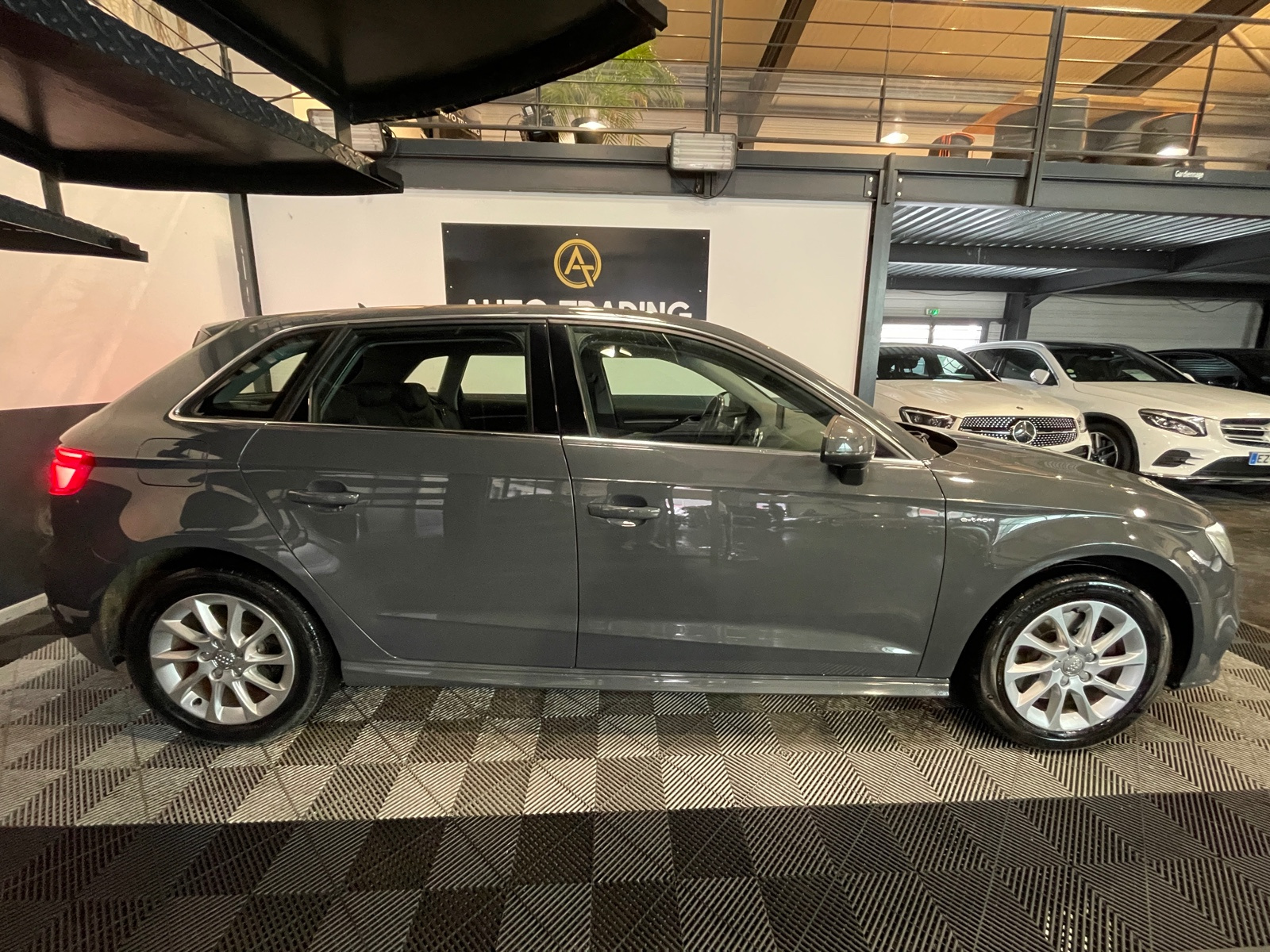Identification du modèle/technologie : inscriptions e-tron à l'extérieur sur la calandre singleframe , le hayon, les ailes AV et les moulures de seuil ; inscriptions e-tron à l’intérieur sur le pommeau du levier de vitesses et sur le tableau de bord côté passager AV