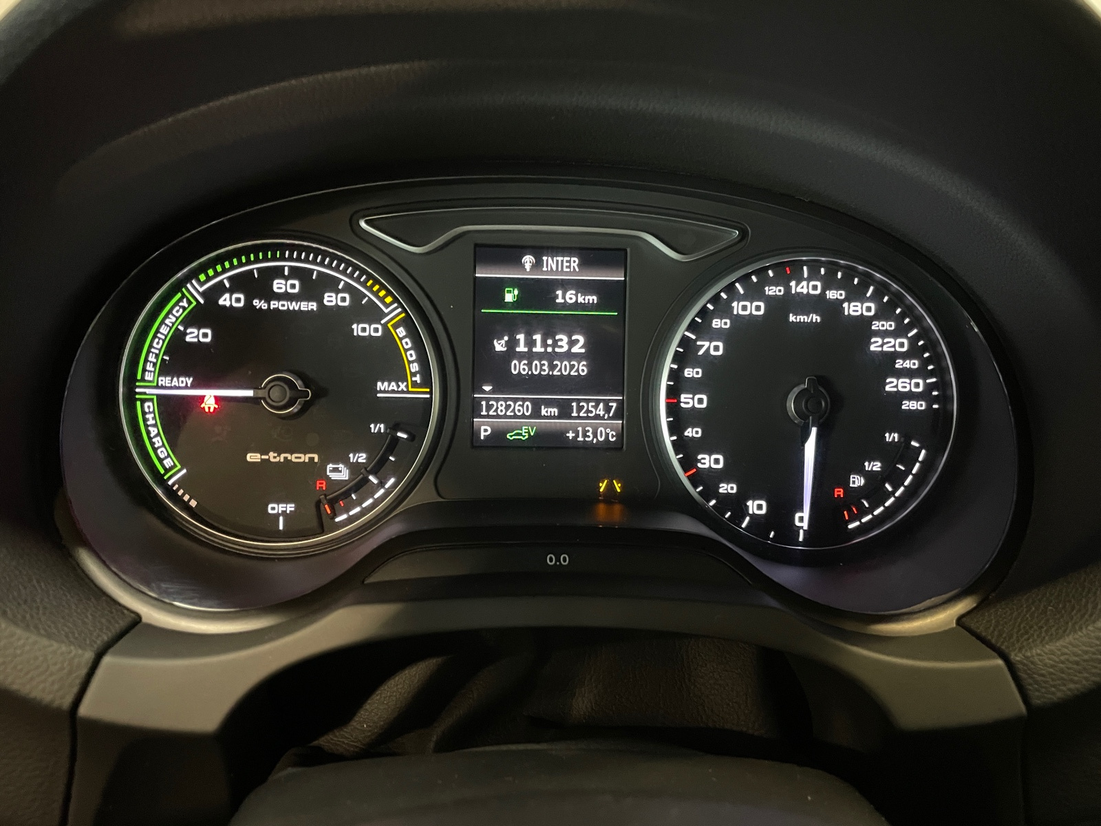 Wattmètre sur le combiné d'instruments (à la place du compte-tours) qui indique l'état du système