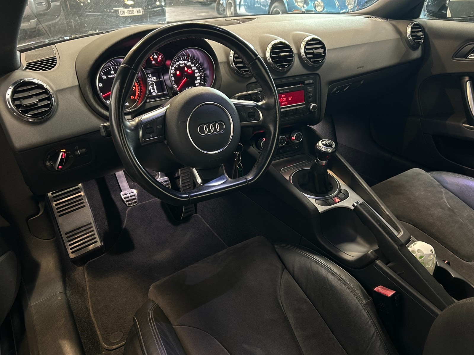 Tableau de bord capitonné, avec visière noire au-dessus des instruments