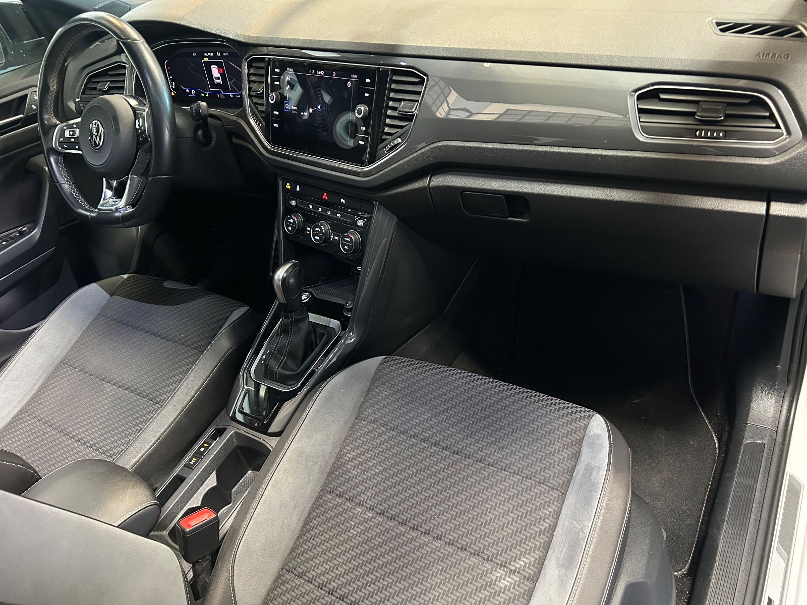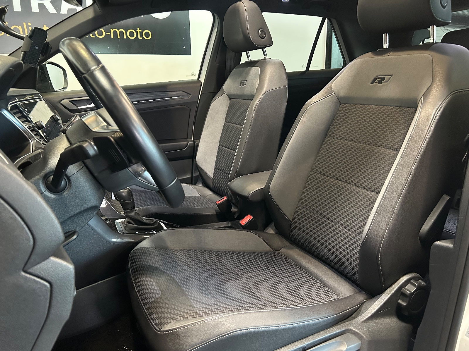 Sellerie en Tissu/Microfleece ArtVelours, "Carbon-Flag" et simili cuir Logo R-Line brodé sur les sièges avant.