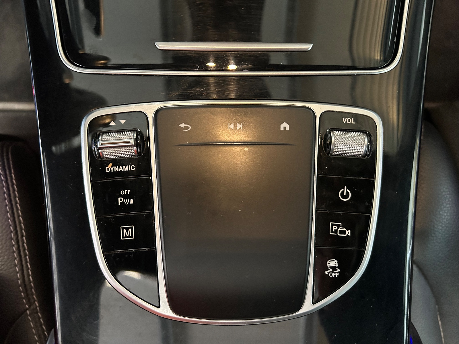 Grand insert décoratif en finition laque noir sur la console centrale