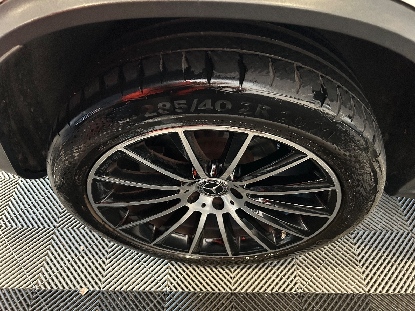 Système de freinage AV doté d’étriers fixes à 4 pistons et du logo "Mercedes-Benz" et de disques de frein perforés de dimension 360 mm/36 mm